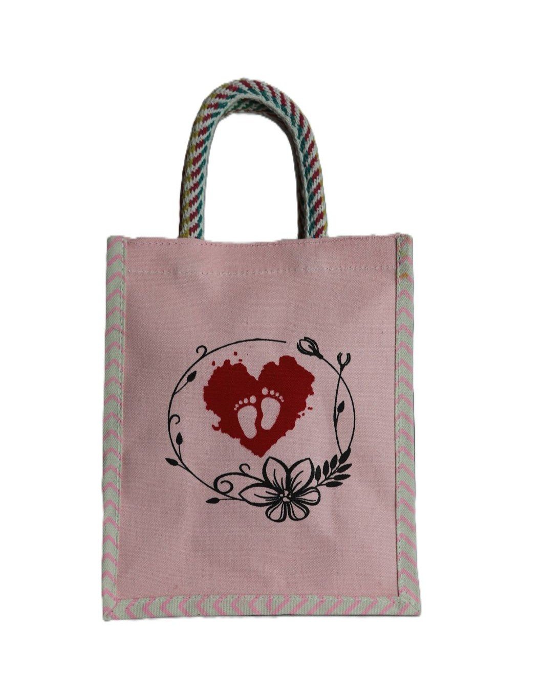 Celebrate special occasions with the heart & foot printed canvas gift bag from Pandian Bag. Designed with vibrant prints, this canvas bag adds a cheerful and stylish touch to any event. Moreover, the high-quality material ensures durability, making it suitable for repeated use. Its charming design makes it perfect for baby showers, first birthdays, and other celebrations where thoughtful presentation matters.