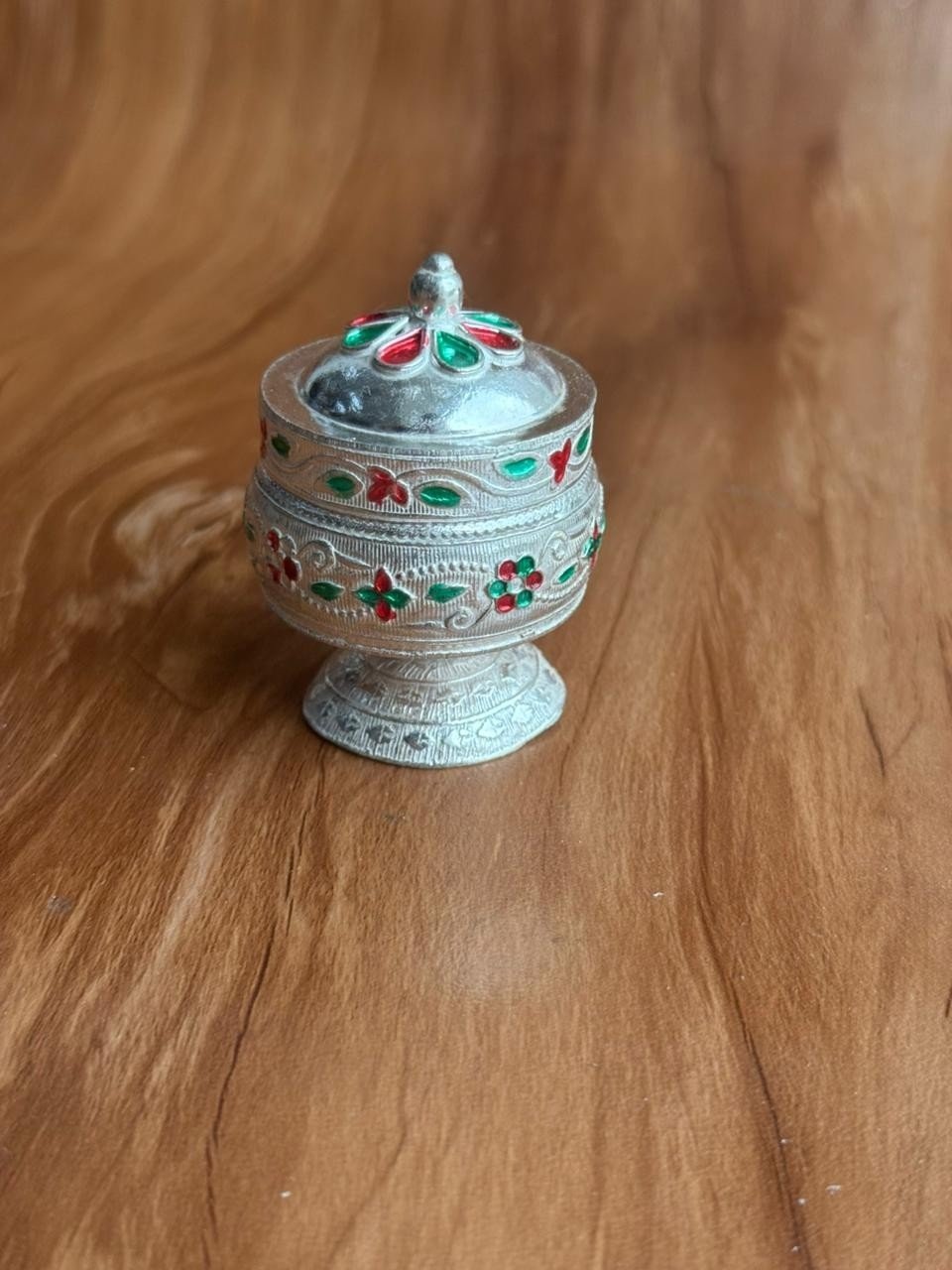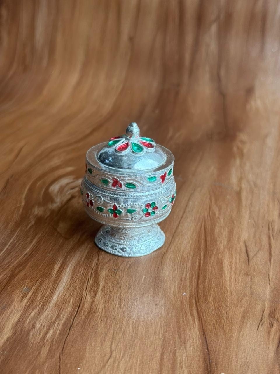 This decorative Kumkum holder stands out because of its stunning German silver shine and fine craftsmanship. Additionally, the compact design makes it perfect for daily use and festive occasions. Whether you place it on your pooja shelf or display it during special rituals, it adds a divine touch to your spiritual space. As a result, it becomes one of the most cherished pooja items for devotees who value tradition.