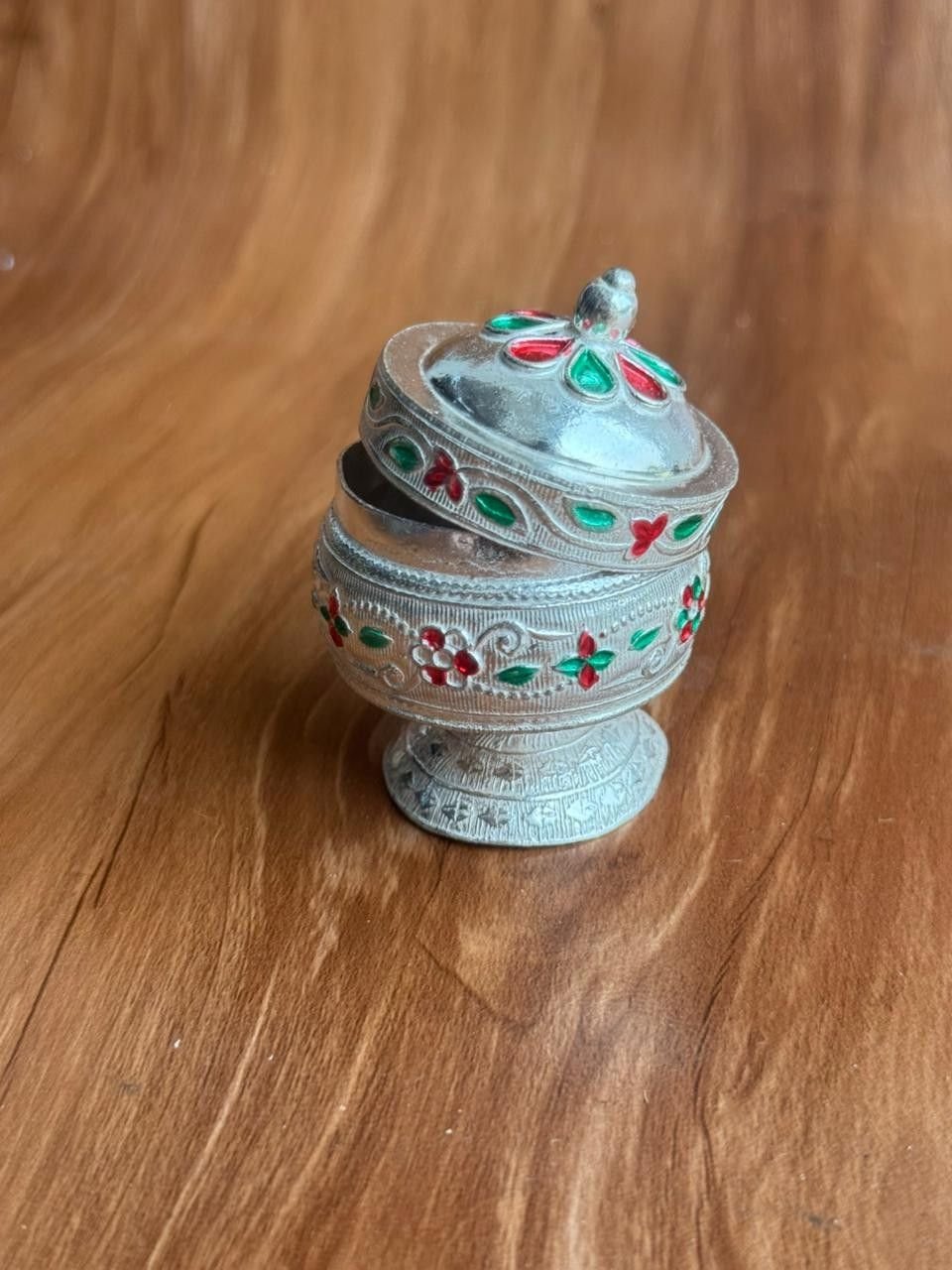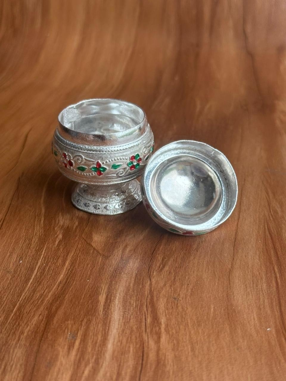 Furthermore, this German silver piece is not just functional but also aesthetically impressive. It safely holds kumkum, turmeric, and other sacred powders used during prayers. Therefore, it supports your rituals while elevating your pooja décor. Many customers prefer choosing a German silver pooja item because it brings a luxurious yet traditional feel to their ceremonies. This holder offers exactly that balance.