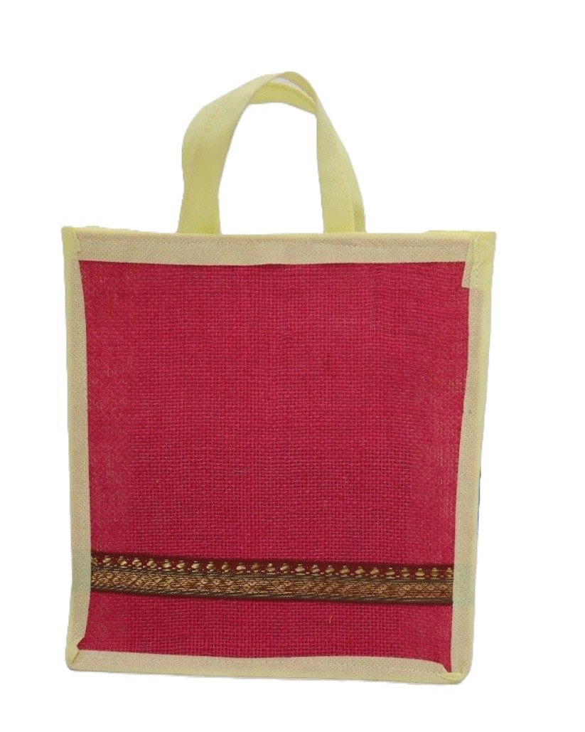 Color Jute bag with jari design & side nonwoven