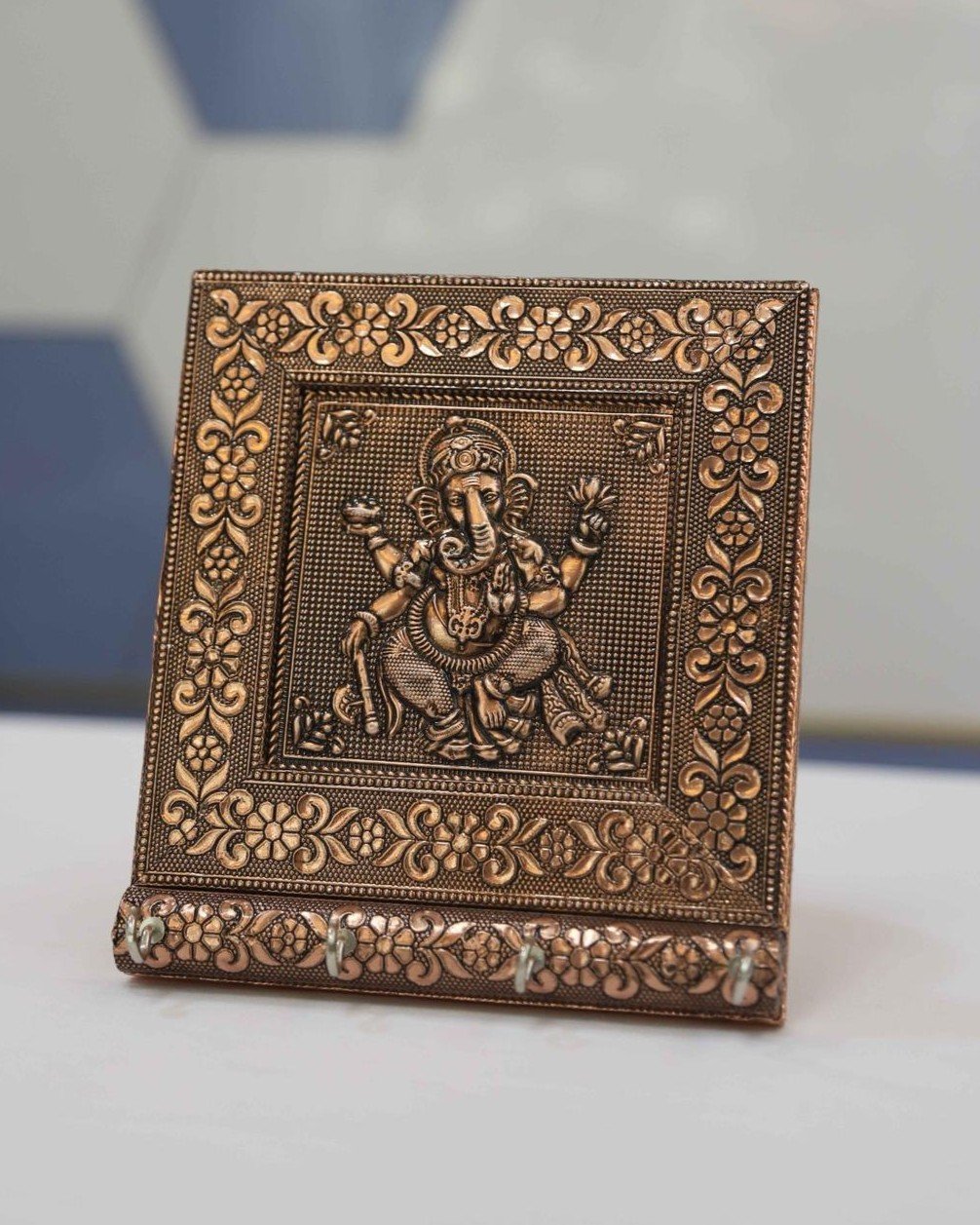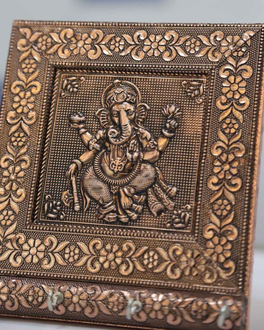 Crafted with detailed artistry, this piece reflects traditional values and modern functionality. Moreover, the oxidized copper finish gives it a rich, antique look that blends perfectly with both classic and contemporary interiors. If you are searching for a durable keyholder that also enhances décor, this design offers the ideal balance. In addition, the strong hooks securely hold multiple key sets, so you never misplace them again.