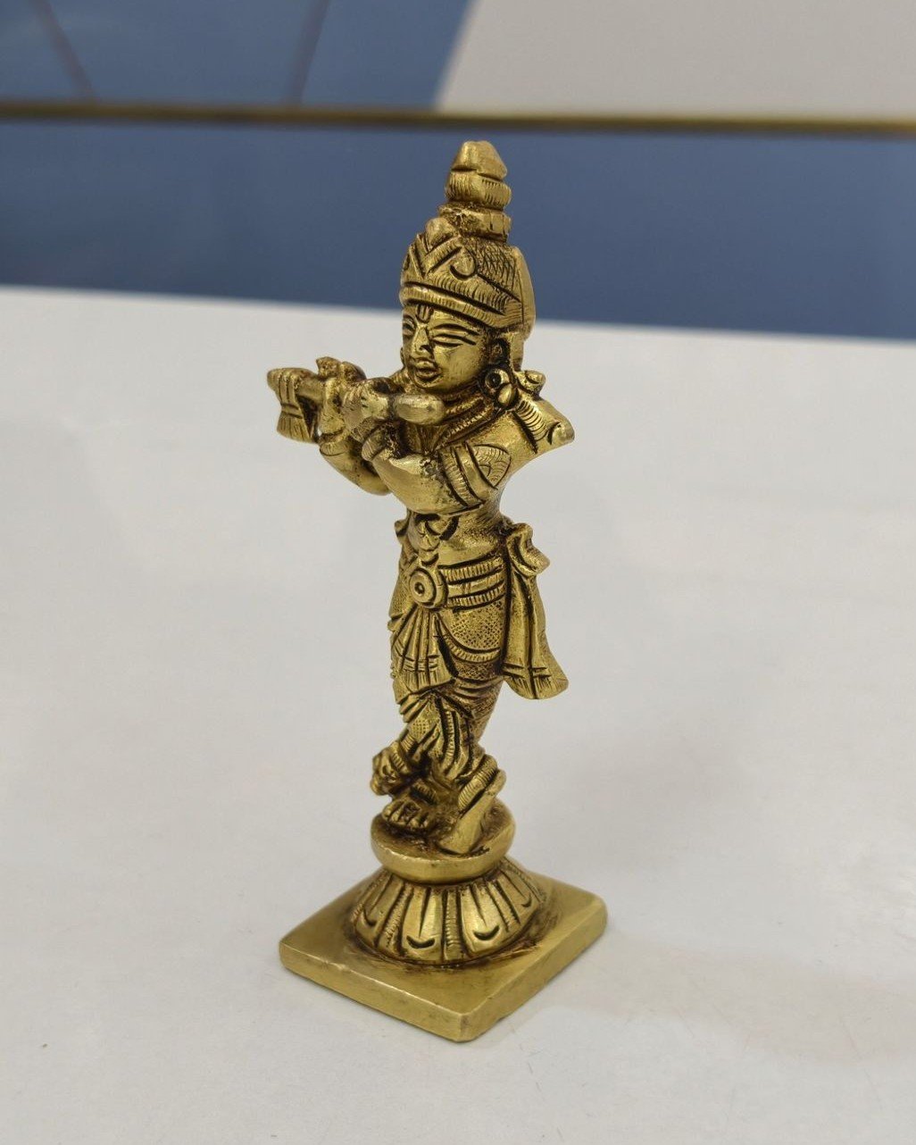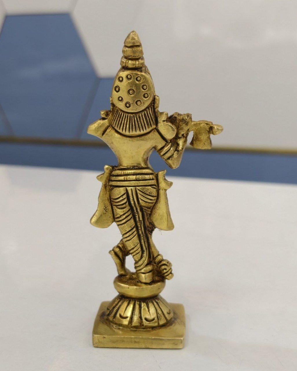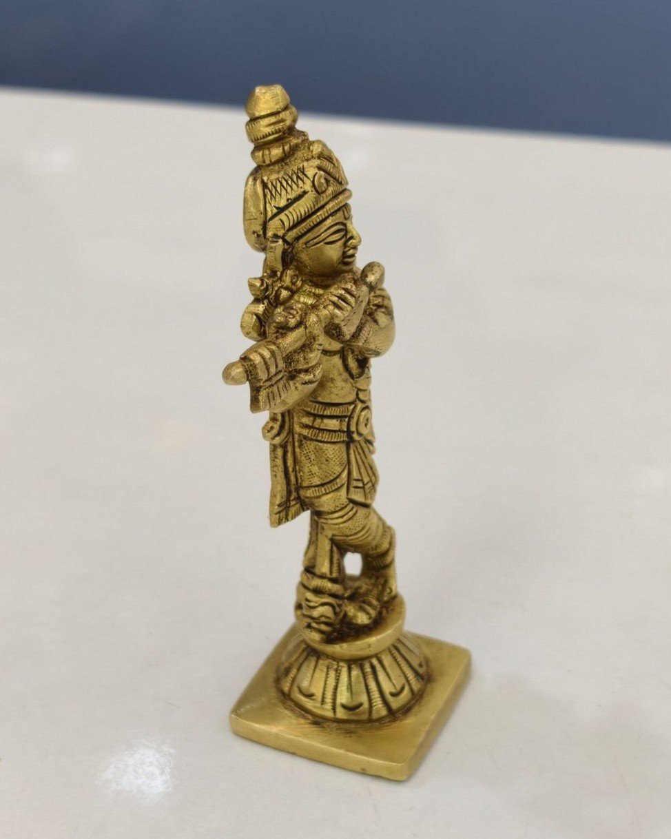 In addition to daily worship, this Krishna idol works wonderfully as a decorative showpiece. The rich golden tone of brass complements both traditional and contemporary interiors. Furthermore, brass offers long-lasting durability, which helps the idol maintain its shine and structure for years. With simple care and gentle cleaning, it continues to radiate divine charm.