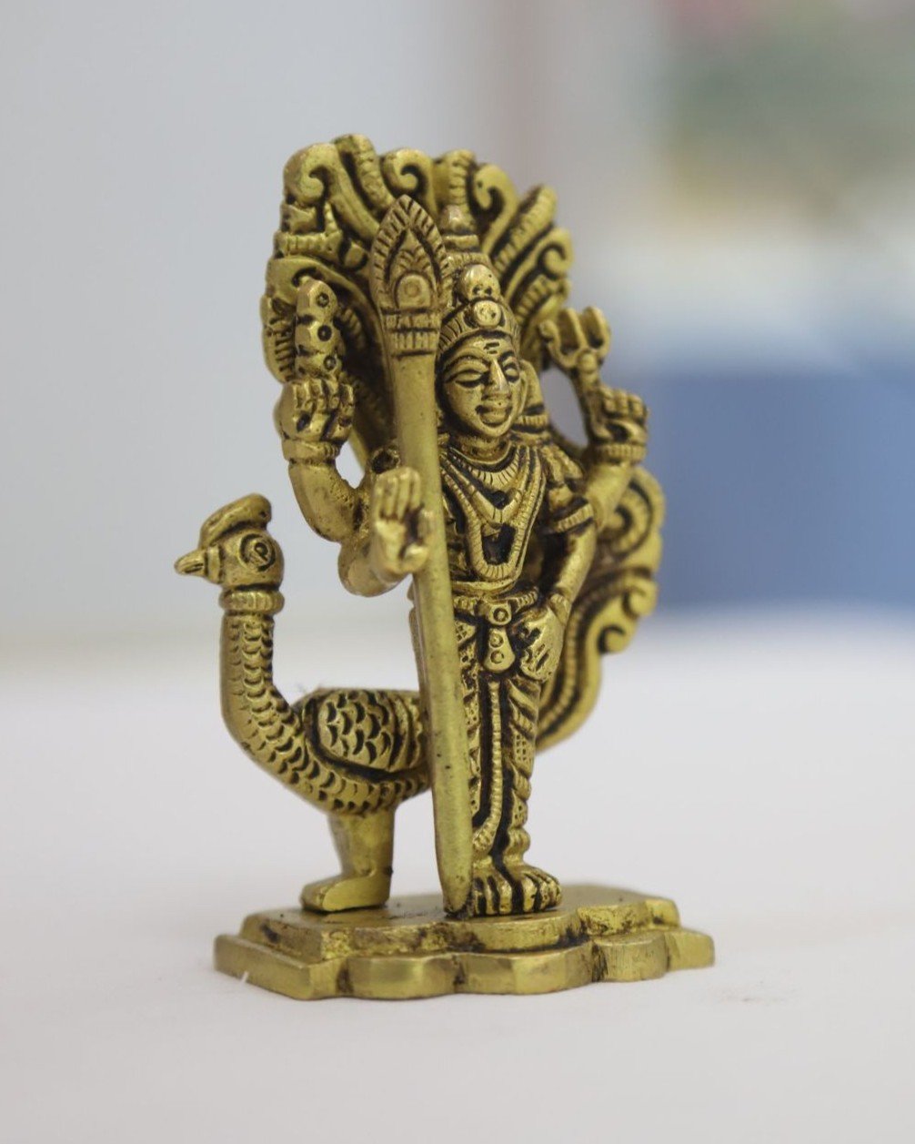 In addition to spiritual use, this Murugar statue works perfectly as a showpiece for home decor. Whether placed on a pooja shelf, wooden cabinet, or entrance console, it adds a divine aesthetic to your interior. Furthermore, the intricate craftsmanship highlights traditional South Indian temple art, making it a standout decor element. Therefore, it blends devotion with elegance seamlessly.