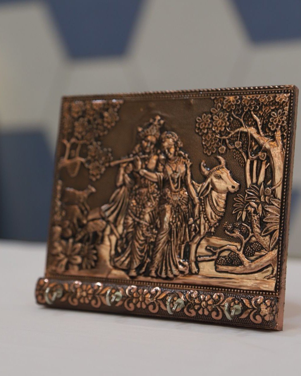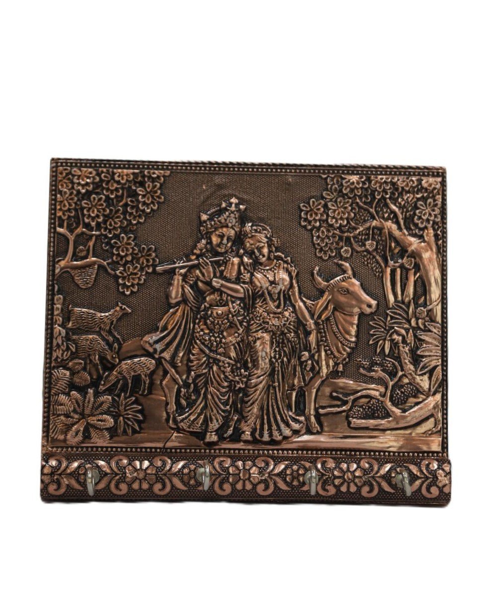 Designed with artistic detailing, this piece reflects timeless devotion and graceful charm. Moreover, the rich metallic tone gives it a premium look that suits both traditional and contemporary interiors. If you are looking for a stylish copper keyholder that also serves as décor, this design offers the perfect balance. In addition, the strong hooks provide reliable support for multiple key sets, so organization becomes effortless.